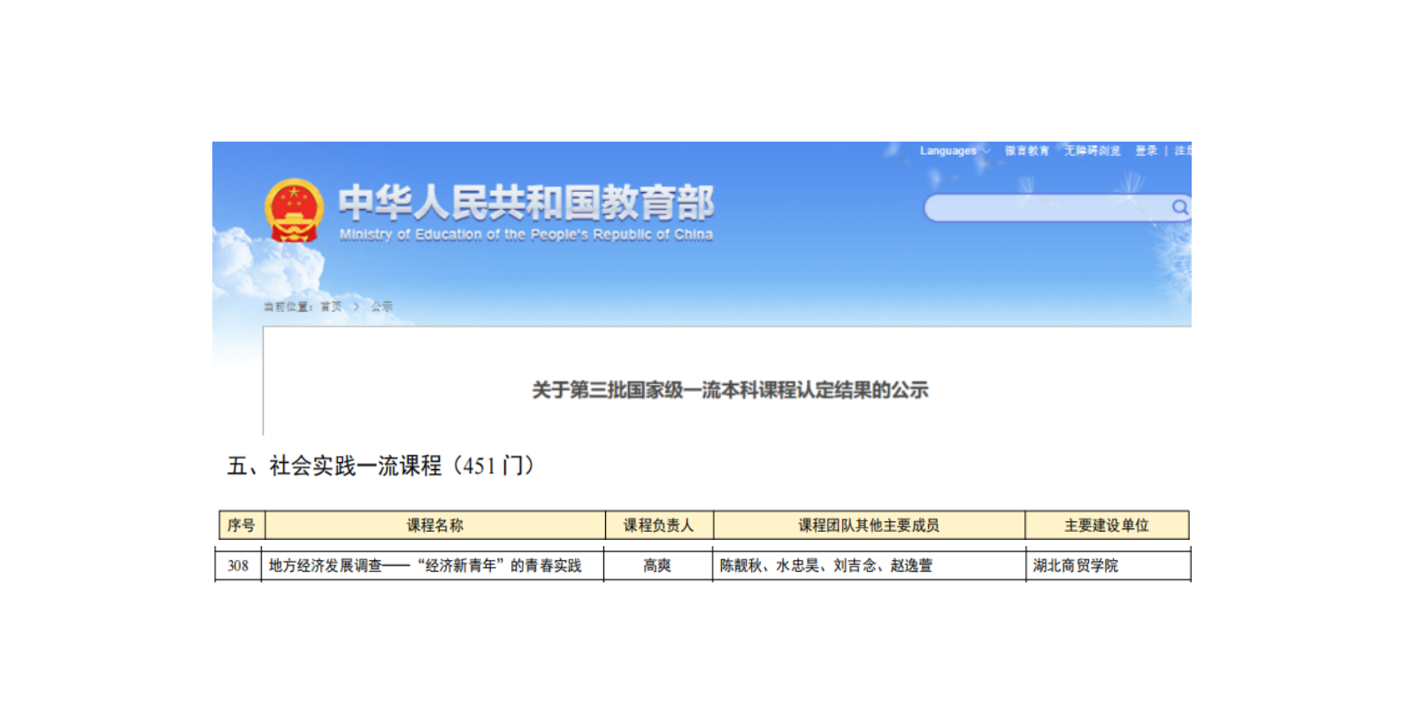 8月21日,教育部公示第三批国家级一流本科课程认定结果,永乐高131net高爽老师主讲的《地方经济发展调查——“经济新青年”的青春实践》成功入选“社会实践一流课程”。这一成果不仅是学院课程建设的重大突破,更实现了学校在国家级一流本科课程领域的“零的突破”,标志着学校的教学改革与课程建设迈入新阶段。