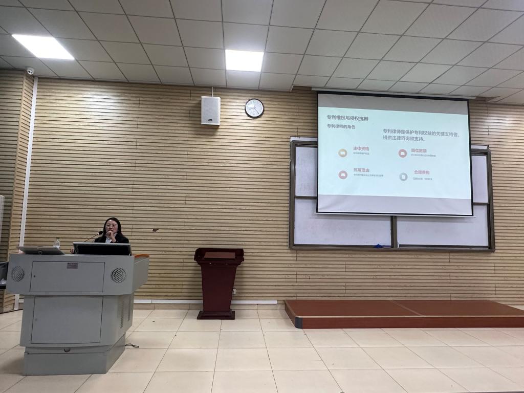 讲座围绕知识产权法律体系、专利申请流程、保护难点及维权路径等核心内容展开。孙敏洁从法学基础知识入手,以生动案例为引,为同学们阐述了专利制度如何激励创新,法律又如何为创新成果提供有力保障,帮助新生直观理解专业知识与现实应用的紧密联系。