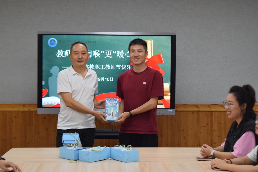 与此同时,咸宁校区的教师节慰问活动同步开展。学院副院长徐刚、党总支副书记郑燕培将包装精美的润喉糖逐一送到教师手中,向大家致以节日的祝福。