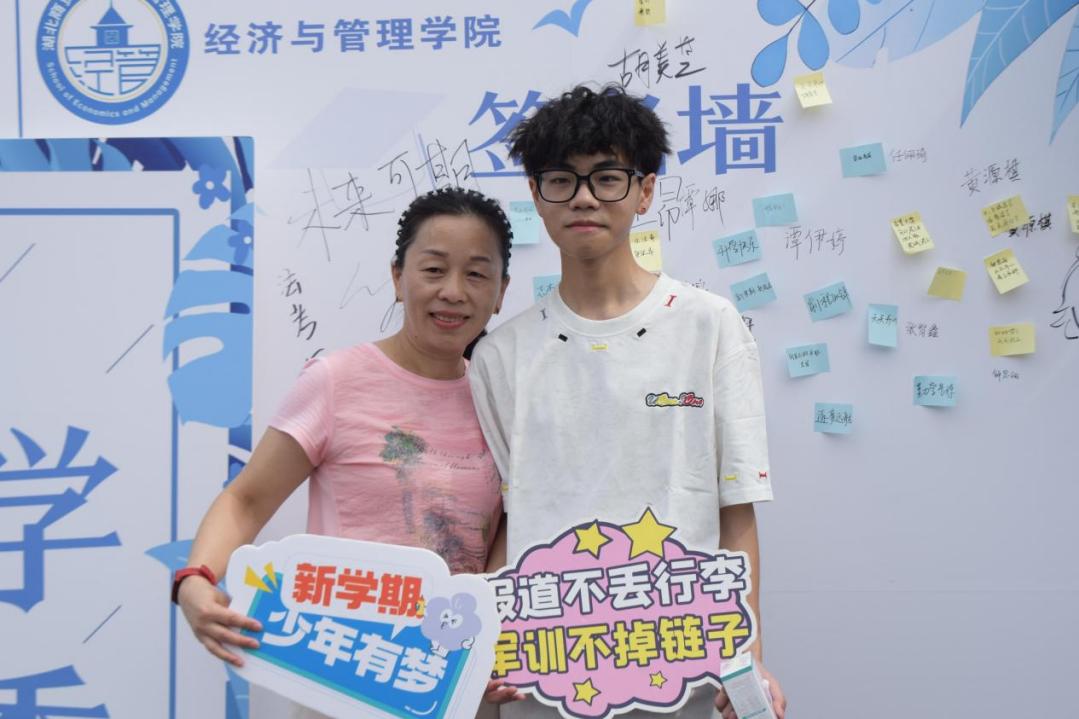 为进一步增强新生的融入感和仪式感,学院特别策划“幸运抽奖”互动环节,奖品涵盖笔记本、台灯等学习用品,雨伞、小风扇等生活物资,以及羽毛球拍、跳绳等体育器材,贴近学生实际需求,广受欢迎。现场还设置了大型签名墙和心愿背景板,新生纷纷签名并写下“大学,我来了!”“努力成为更好的自己”等青春寄语,不少学生与家长合影留念,记录大学启程的美好瞬间。