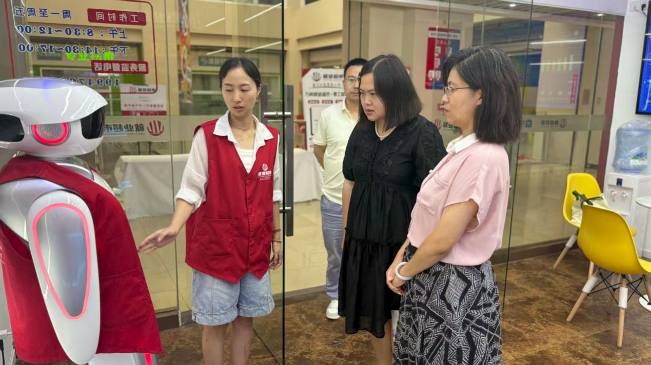 在公司副总经理江振华和王丽的陪同下,我校教师首先参观了“就业超市”实体运营平台,详细了解其以数据驱动为核心的岗位归集、人才测评和智能匹配机制。该平台通过线上线下联动,高效连接用人单位与求职者,其创新服务模式为人力资源管理实践教学提供了丰富的案例素材和真实业务场景。
